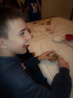 There was gingerbread house making at Nanny and Poppy's house on Christmas Eve.